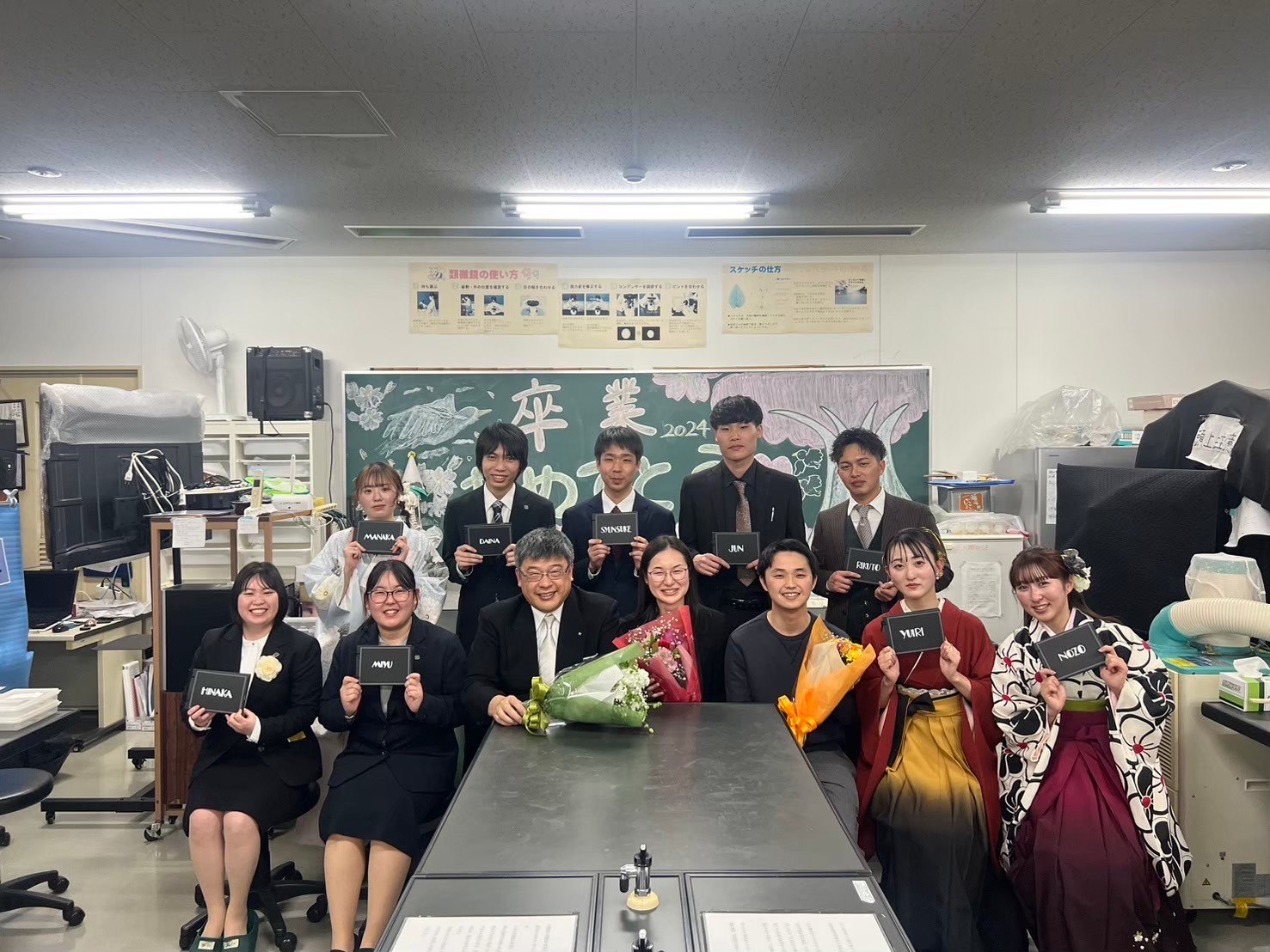 2024年3月18日 学位授与式 2024年3月18日に学位授与式がありました。今年は本研究室から7名ご卒業されます。 また、生物学研究室特別研究生の田中美有さん、理科教育学研究室研究生の川端日南果さんも研究室を離れられます。 先輩方とお別れをするのは寂しいですが、教えていただいたことを胸にこれからも頑張ります! 卒業生の皆さんも4月から社会人として頑張ってください!
