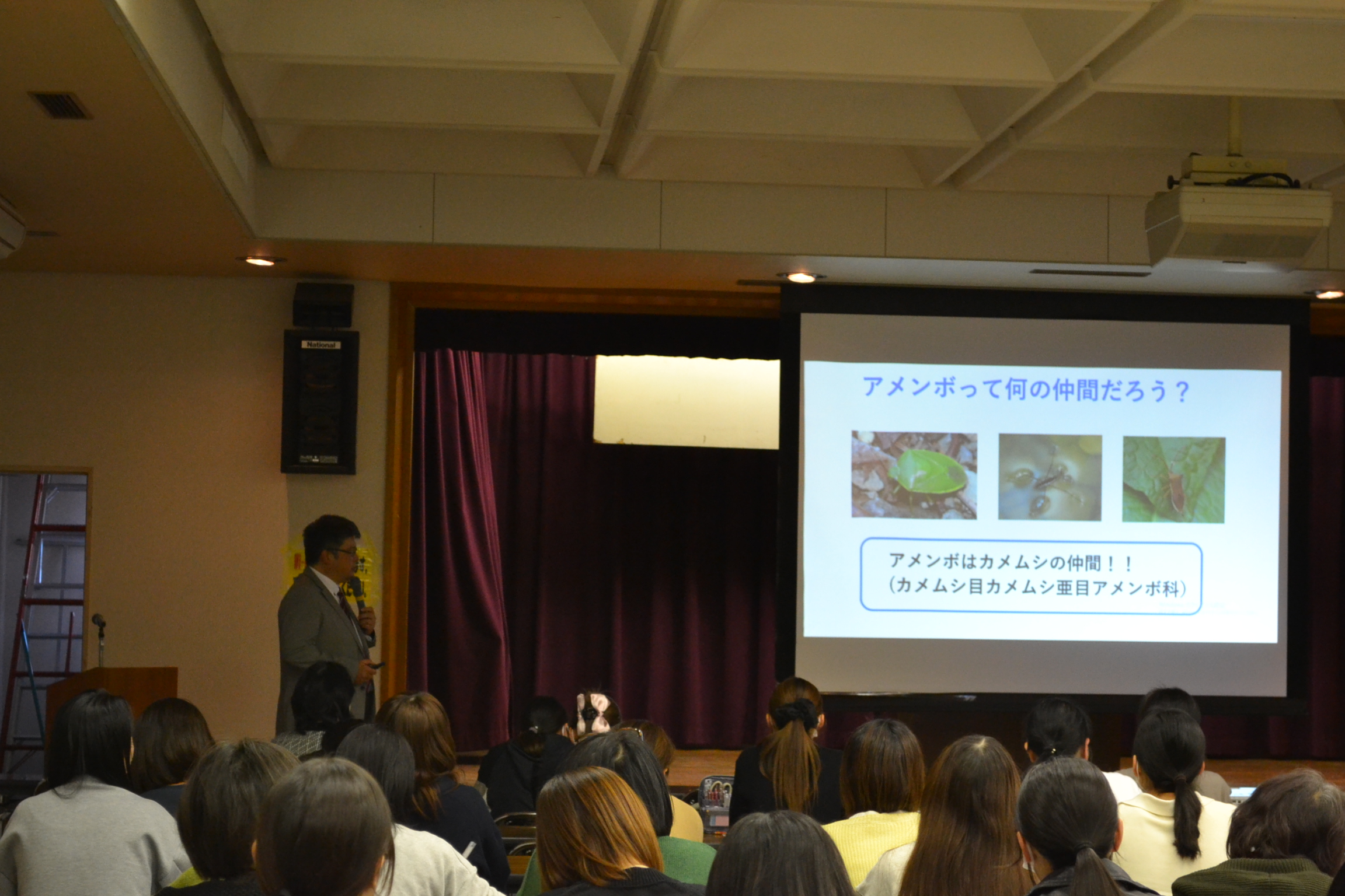 2025年11月22日 津市保育士研修会 2025年11月22日に津市保育士研修会にて生物学研究室の中松豊教授が講義を行われました。 今回はアメンボを用いた教材の紹介をさせていただきました。 講義は今年も大変好評をいただき、尽力してきた甲斐がありました。 特に、講義後に本研修会を担当された先生方より、「中松先生の研究室で学べる環境が羨ましい」とのお言葉を揃っていただいたことが、 強く印象に残りました。 恵まれた環境に感謝しつつ、今後も一層研鑽を重ねてまいります。